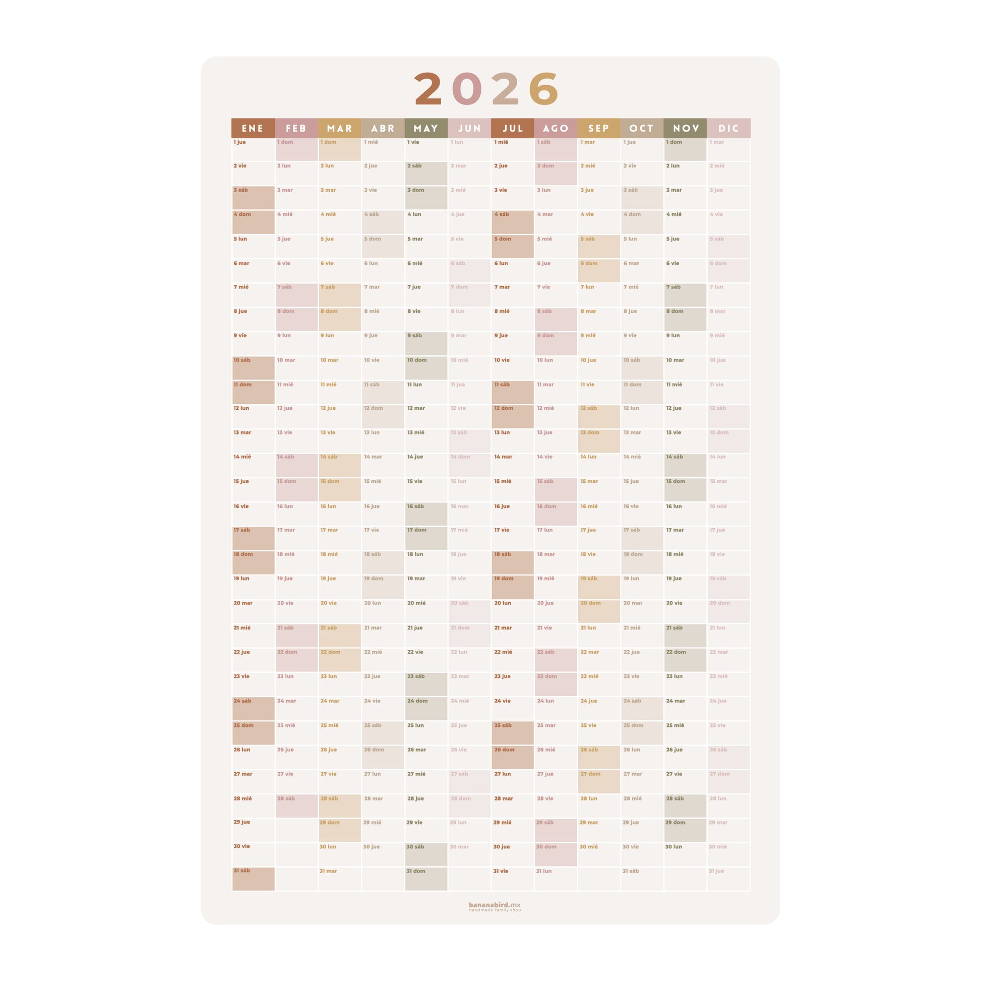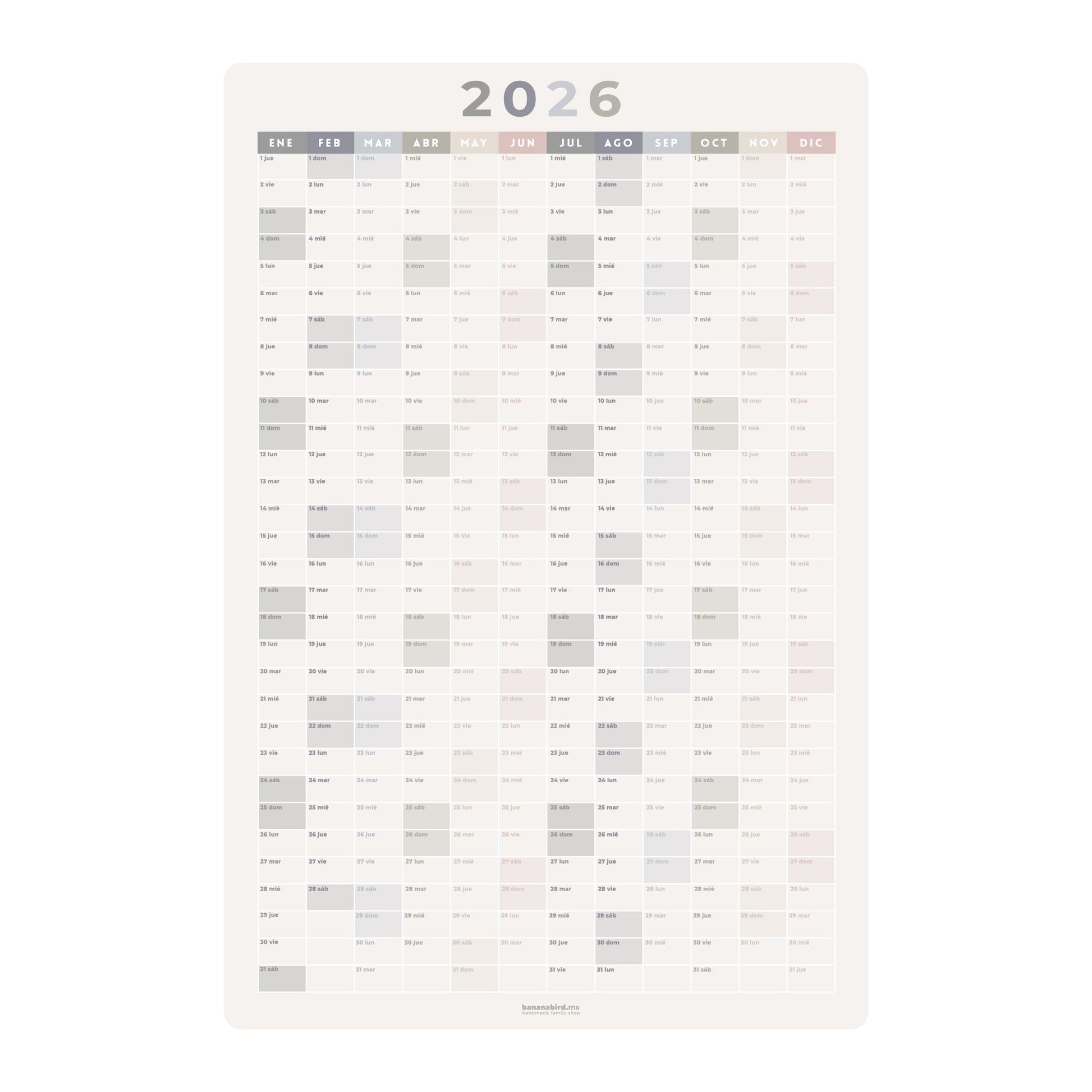 Este planner anual en vinil removible es perfecto para tener siempre a la vista los eventos más importantes del año, organizar fechas escolares, actividades familiares, etc. Su formato visual facilita la planeación anticipada y evita olvidos.